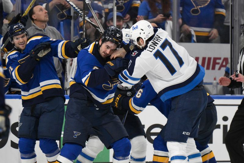 The Blues capitalized on their chances effectively with Brayden Schenn contributing significantly to their offensive success through assists that helped secure this pivotal victory over Winnipeg.